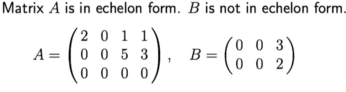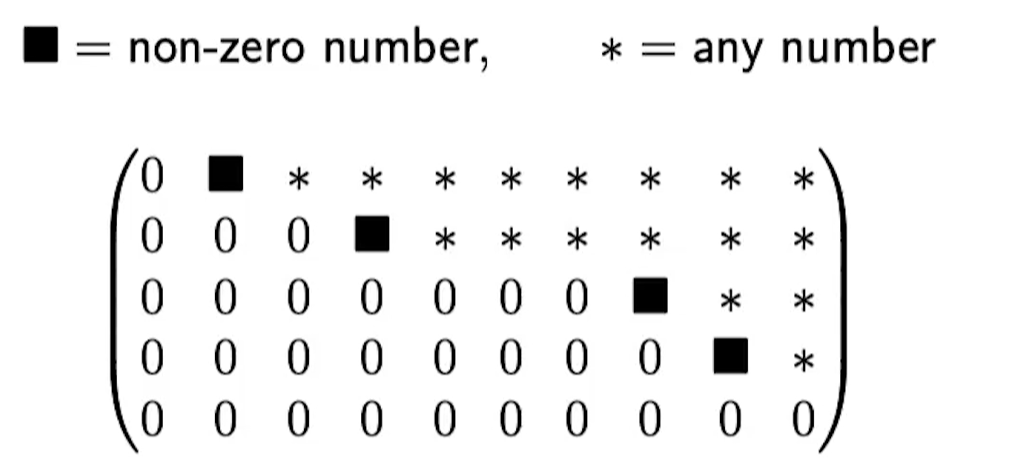 - The first non-zero entry (or leading entry) of a row is to the right of any leading entries in the row above it (if any).