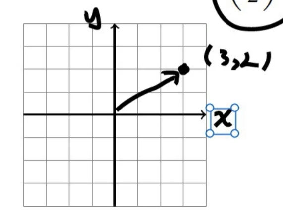 Point can be represented as the vector \left[ \begin{array} \\ 3 \\ 2 \\ \end{array} \right]