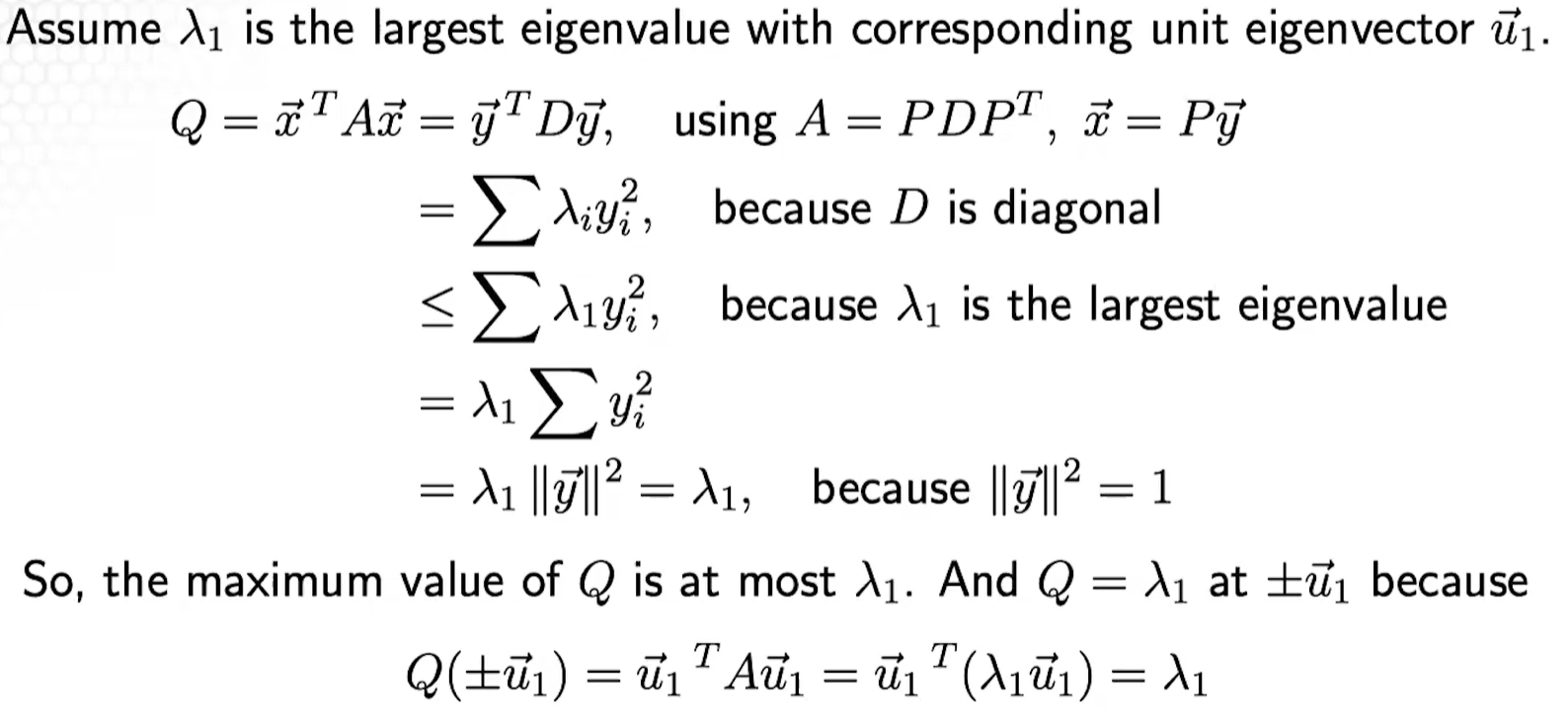 If , is a real symmetric matrix, with eigenvalues and associated normalized eigenvectors Also, Then max value of attained at Then min value of attained at